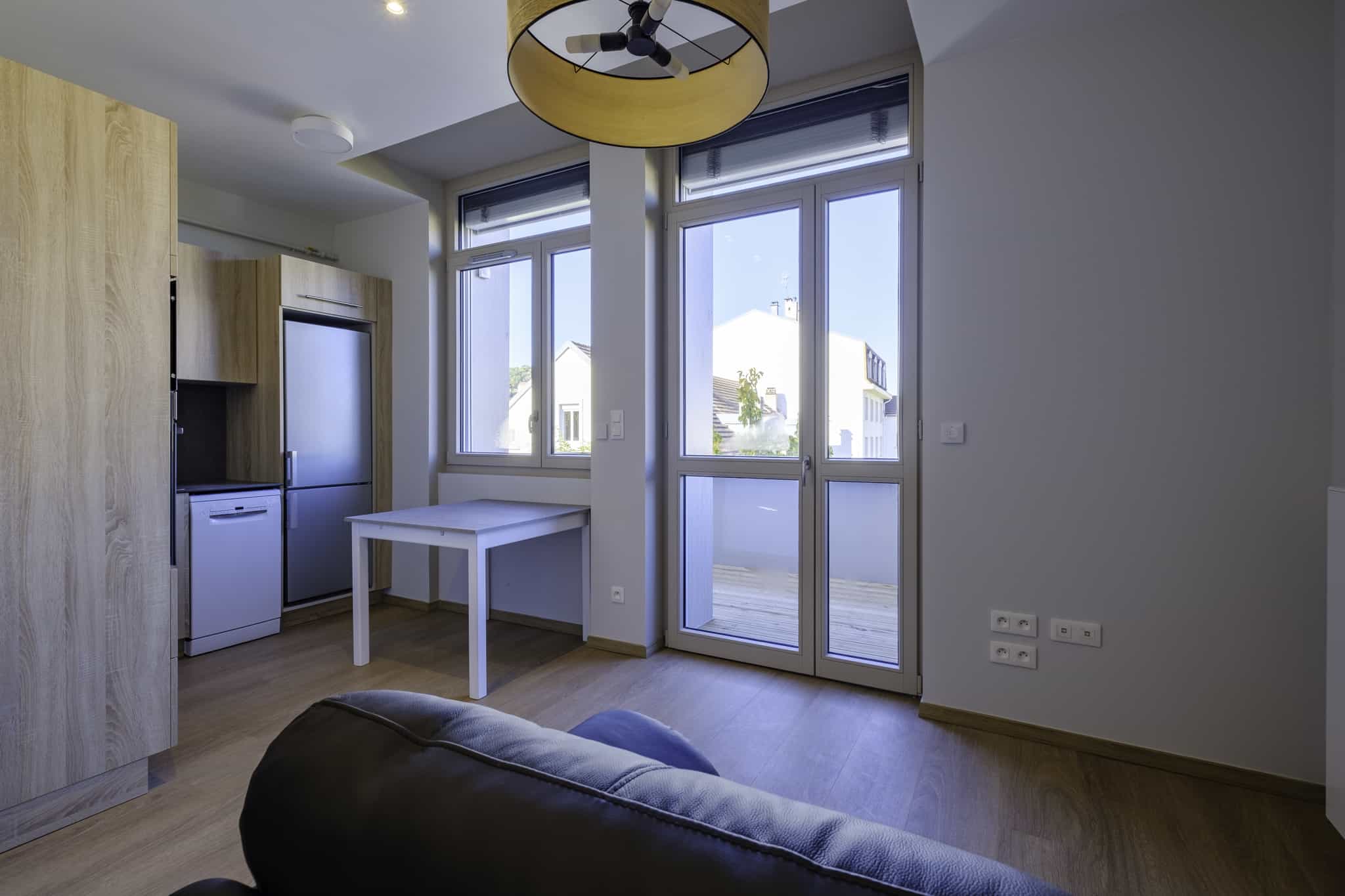 Appartement T2 au 3ème étage entièrement rénové situé au coeur du centre-ville de Lons le Saunier. Porte d’accès sécurisée avec digicode et interphone. Composé d’une pièce à vivre avec coin cuisine, d’une chambre équipée d’un dressing et d’une salle d’eau avec WC. Cuisine équipée d’une plaque de cuisson induction avec hotte, d’un four et d’un frigo […]