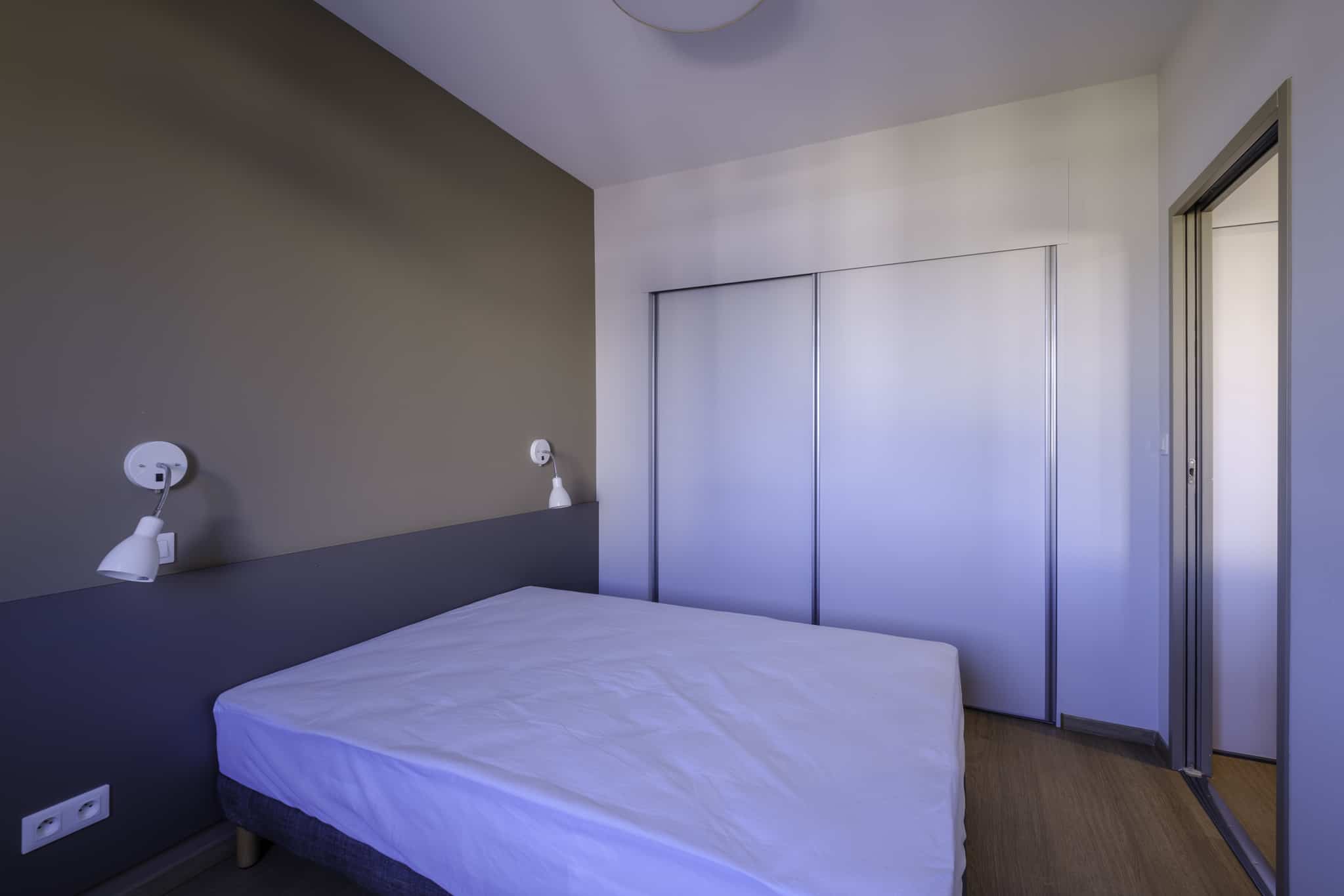 Ce T2 bénéficie d’une luminosité naturelle exceptionnelle grâce à ses grandes ouvertures. Il se compose d’une chambre (lit inclus), d’une salle d’eau et la cuisine, ouverte sur la pièce de vie (canapé inclus), est toute équipée. L’appartement dispose de nombreuses solutions de rangement et vous serez séduits par son balcon ainsi que le petit jardin commun à la résidence.
