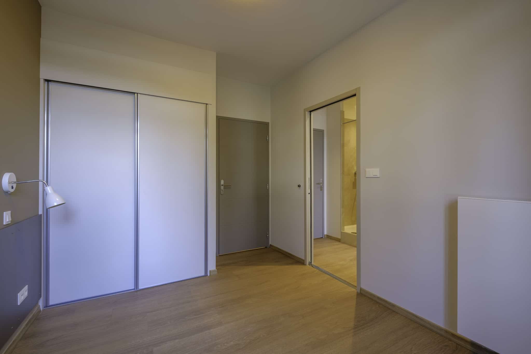 Ce T3 bénéficie d’une luminosité naturelle exceptionnelle grâce à ses grandes ouvertures. Il se compose de 2 chambres, de 2 salles d’eau (douches/baignoire) et la cuisine, ouverte sur une vaste pièce de vie, est toute équipée. L’appartement dispose de nombreuses solutions de rangement (dressings, placards etc.) et vous serez séduits par son grand balcon avec vue sur un petit jardin commun à la résidence.