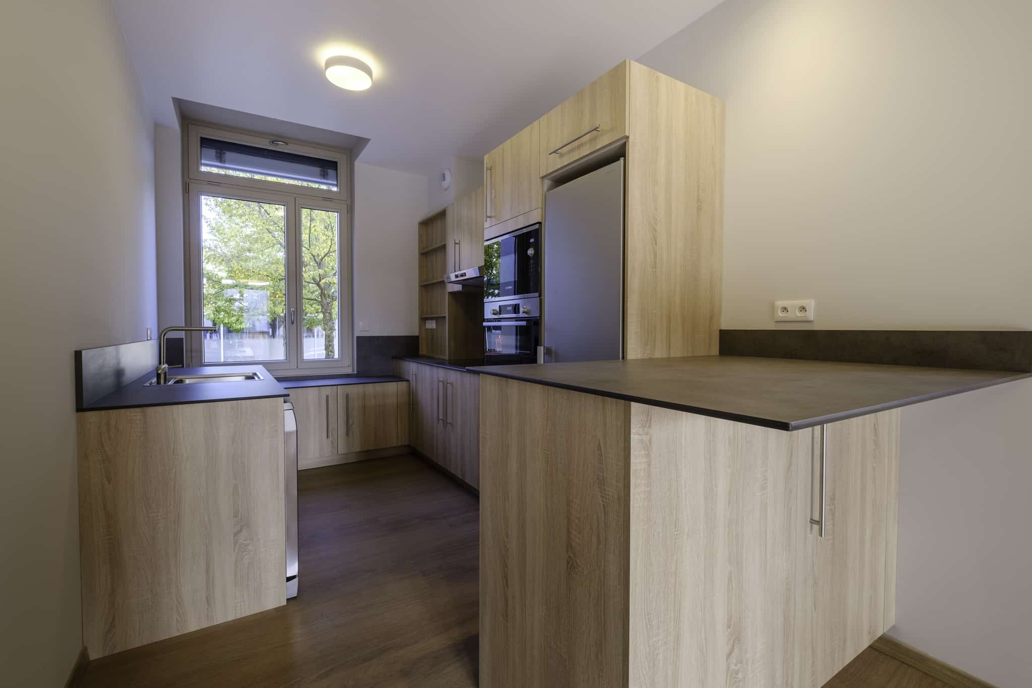 Appartement T3 au 2ème étage entièrement rénové situé au coeur du centre-ville de Lons le Saunier. Porte d’accès sécurisée avec digicode et interphone. Composé d’une pièce à vivre avec coin cuisine, de 2 chambres équipées de dressings, d’une salle d’eau et d’un WC séparé. Cuisine équipée d’une plaque de cuisson induction avec hotte, d’un four et d’un frigo […]