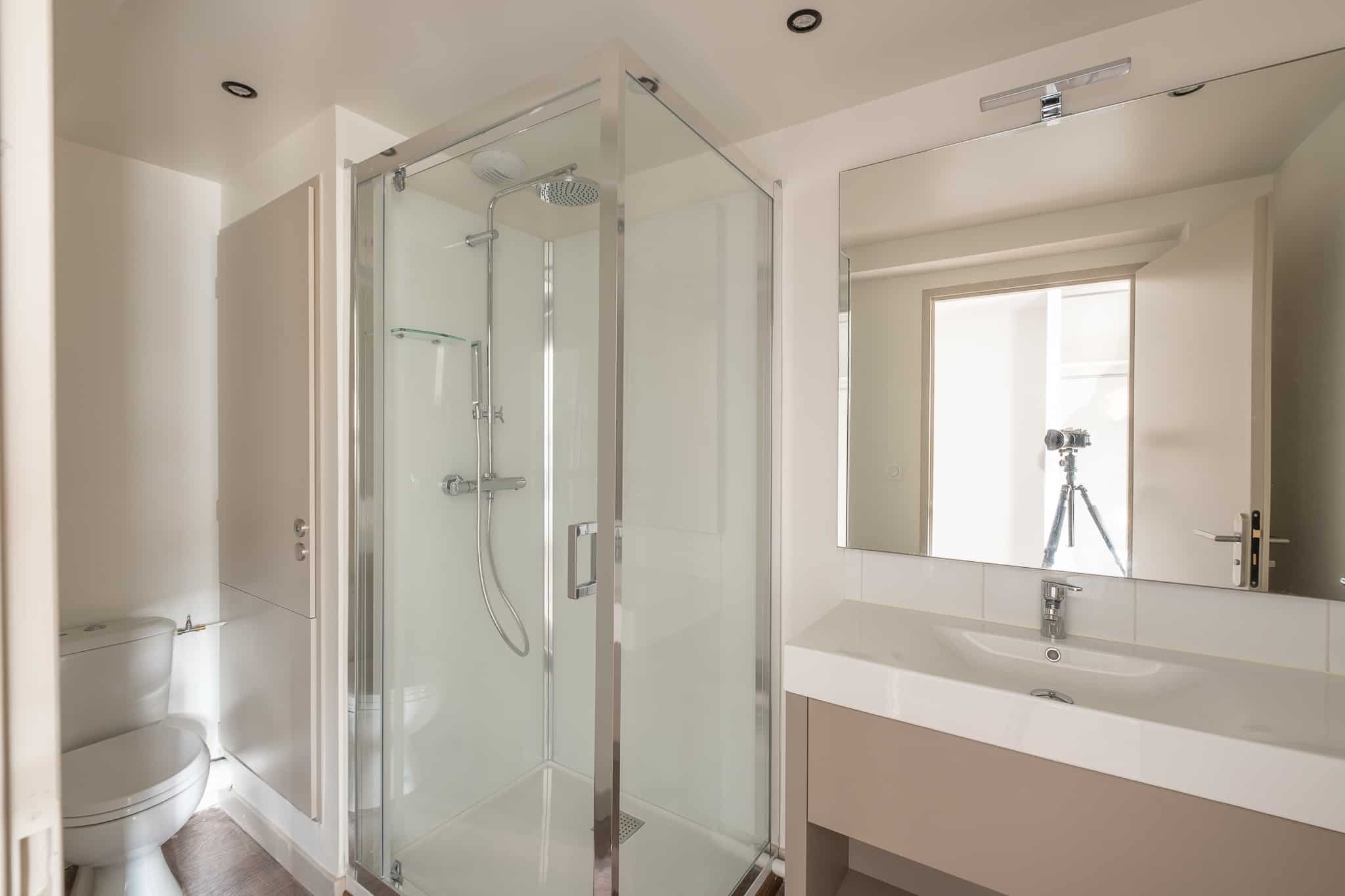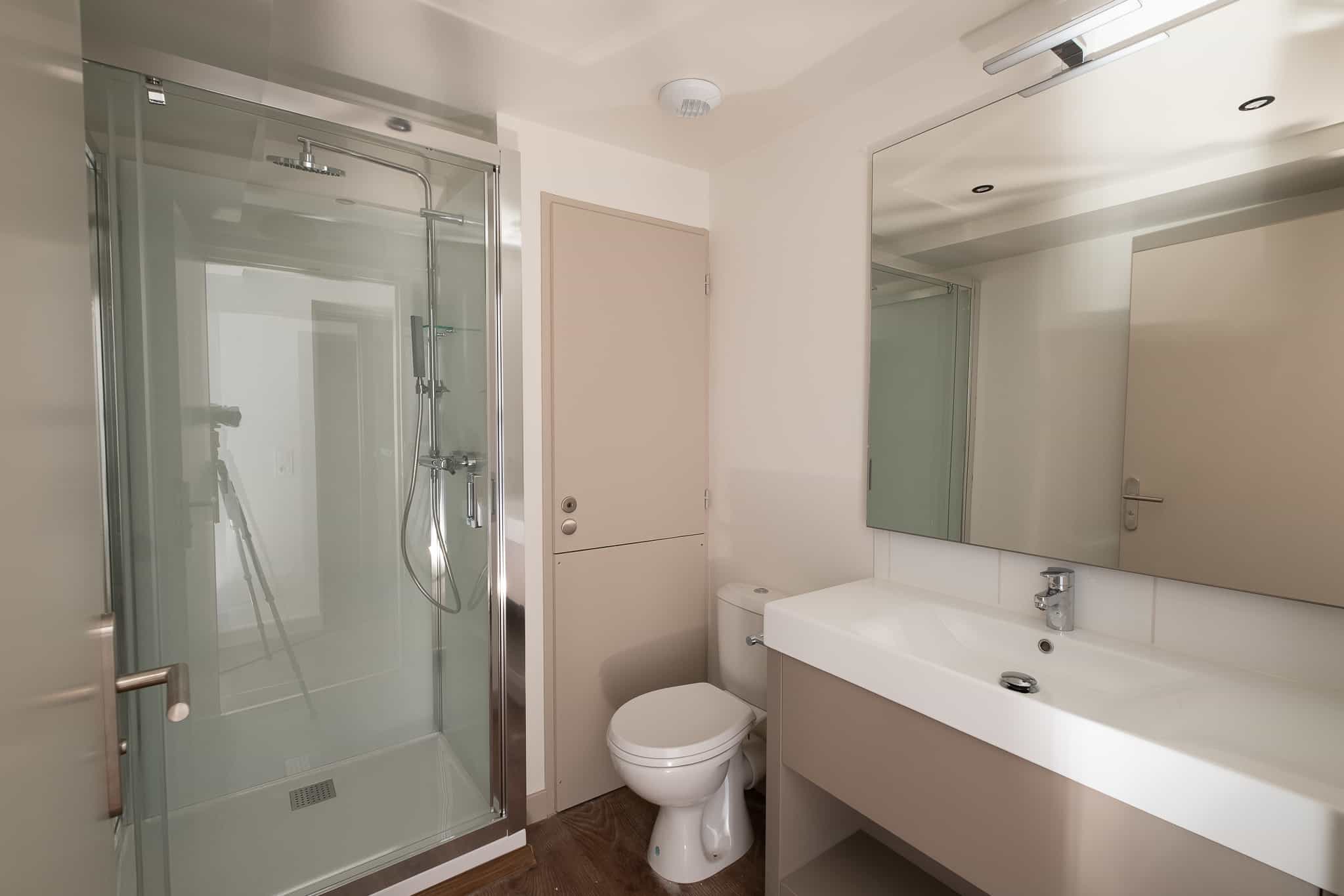 Composé d’une pièce à vivre avec coin cuisine, de 2 chambres équipées de dressings avec chacune leur salle d’eau privative et WC, 1 chambre avec dressing et 1 salle d’eau avec WC.